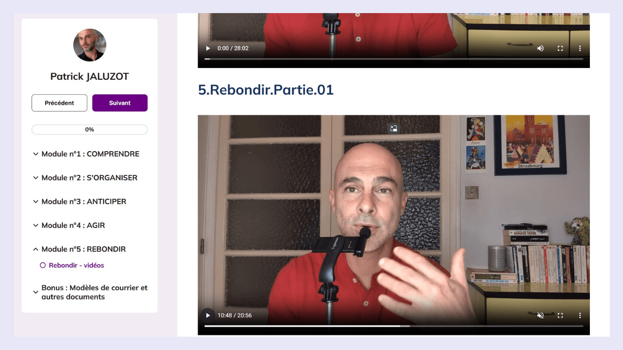 Aperçu de la formation : des vidéos claires, directes, sans blabla inutile.